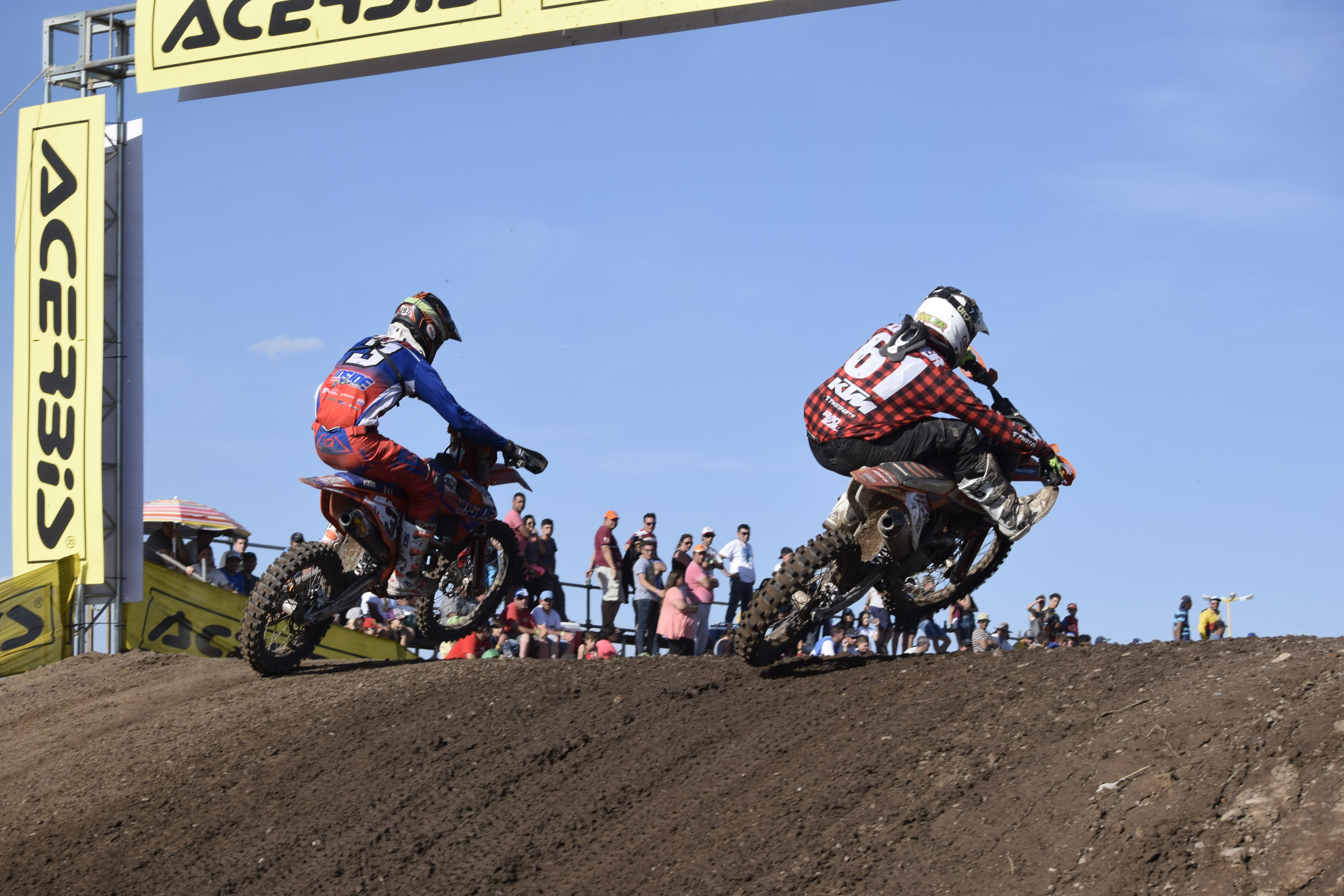 #3 Ignacio Toya en plena pelea con quién sería el campeón de la MX2 2017, #61 Nahuel Kriger.
