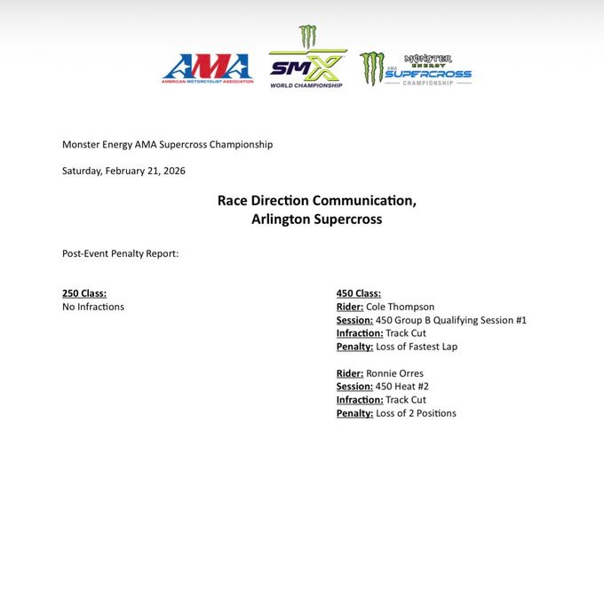 La dirección de carrera de AMA SX, dijo que no se implementarían sanciones porque nada había pasado, y esto publicaron.