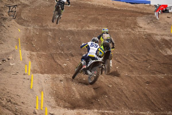 Mateo Bearzi festejando la victoria en MX2 “B” sobre Maximo Caceres en la segunda manga igualmente no le alcanzo para llevarse la general