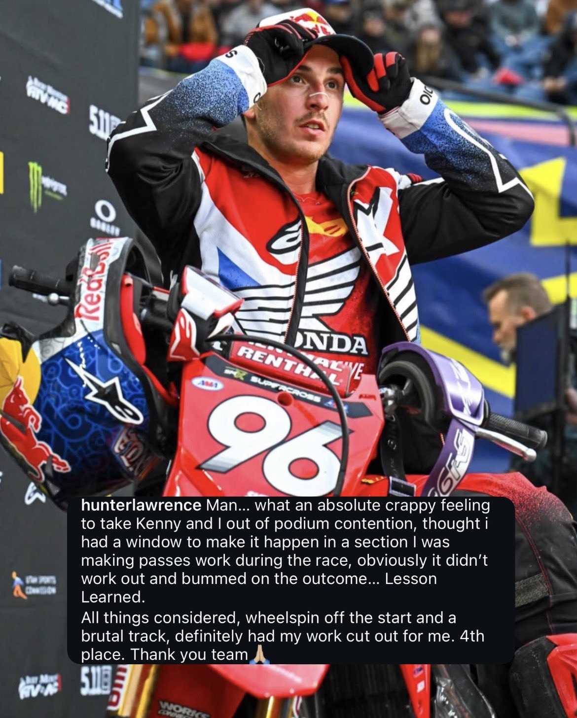 Ken Roczen en Vital MX sobre el incidente con Hunter Lawrence – “Solo fue un pequeño error suyo; normalmente no hace esas cosas. Vino y se disculpó después de la carrera. No me importa, no me preocupa.” Roczen demuestra una vez más que es un auténtico piloto de primera clase.