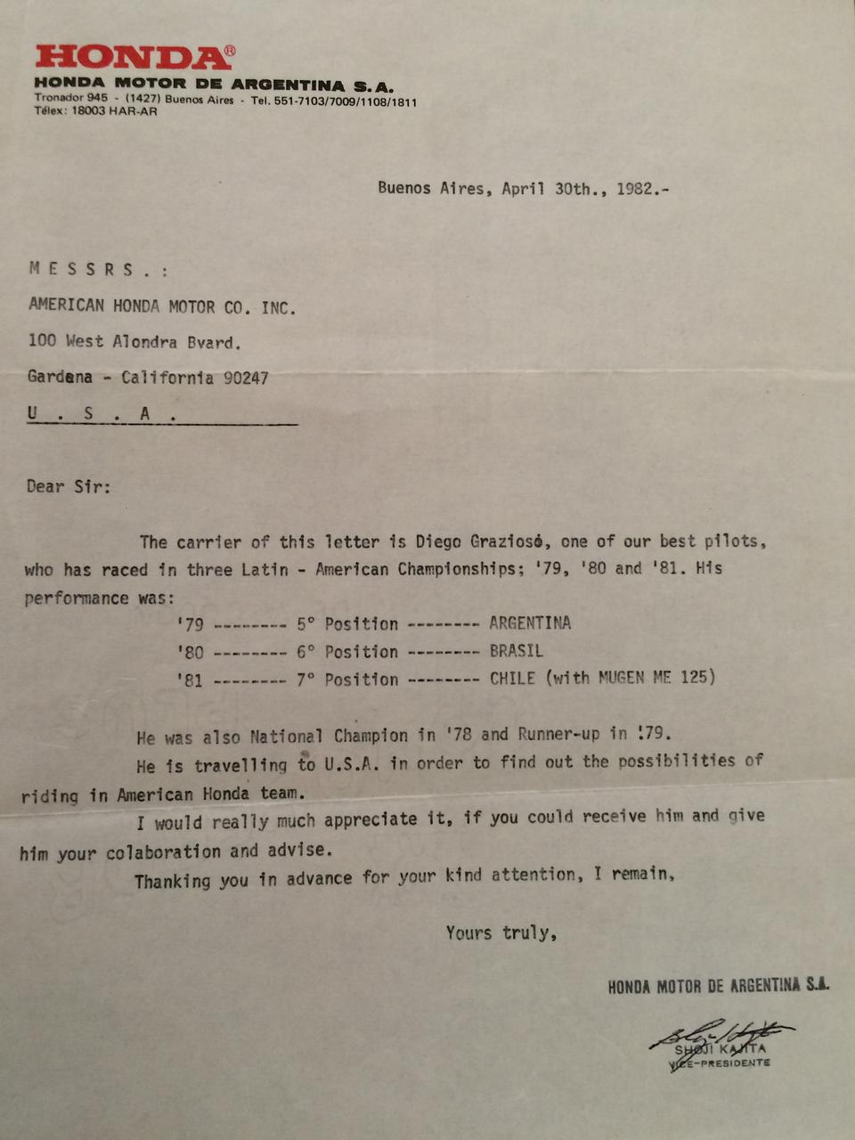 Antes que Honda fabricara en USA, Diego Graziosi era el primer piloto oficial de Honda Motor de Argentina, aquí lo vemos con su mecánico en 1981, Ono Takuya. Vino especialmente del país del Sol Naciente para atender la moto de Diego, que había sido campeón argentino en 1978.