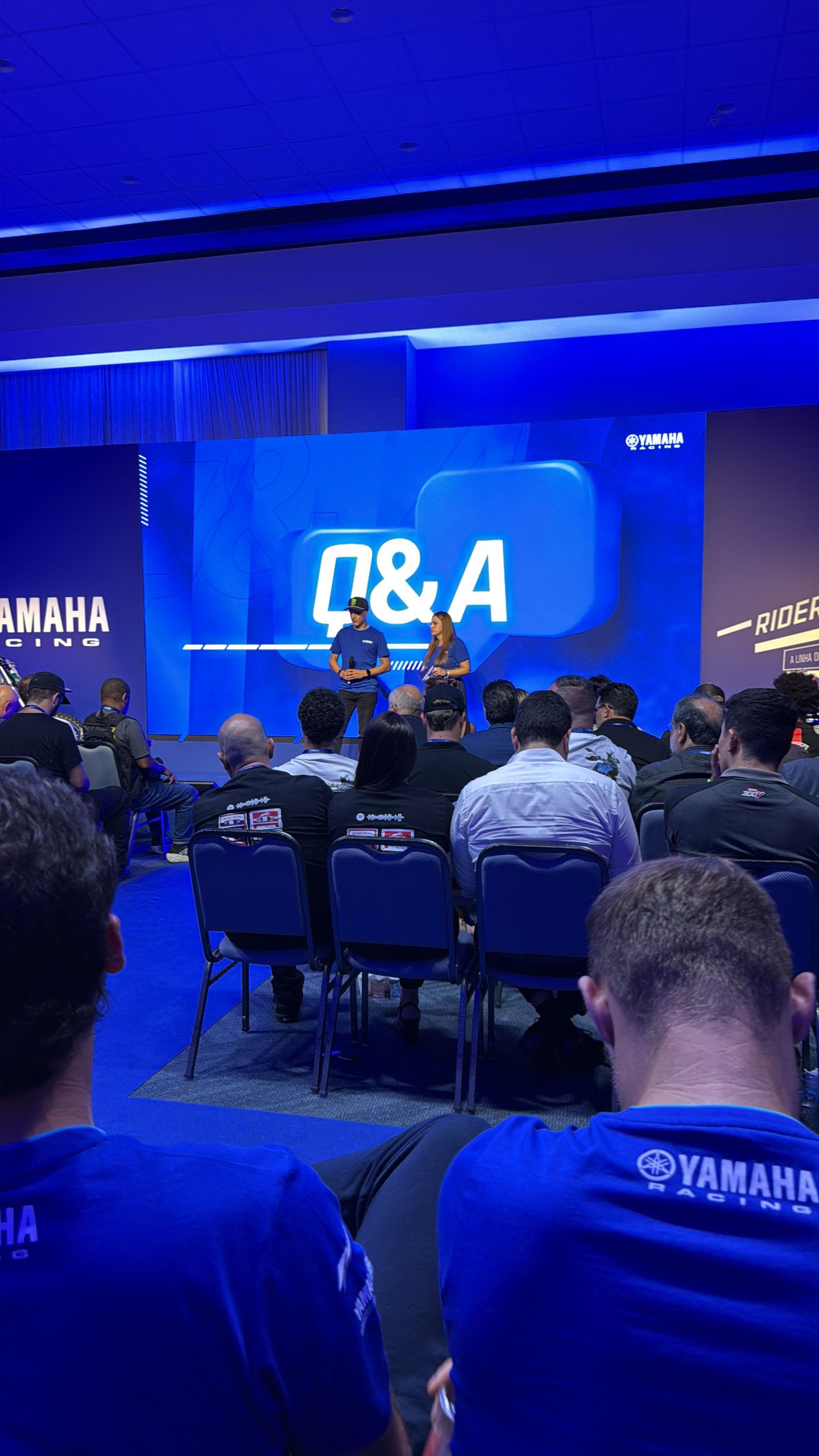 Simplemente fue impresionante verlo. La inversión en la presentación con un nivel increíble, hace que cada piloto de Yamaha en Brasil, se sienta importante y comprometido con SU marca y su moto. Y el orgullo mayor fue verlo a Juanfe García entre esos pilotos, y al lado de Glenn Coldenhoff nada menos!