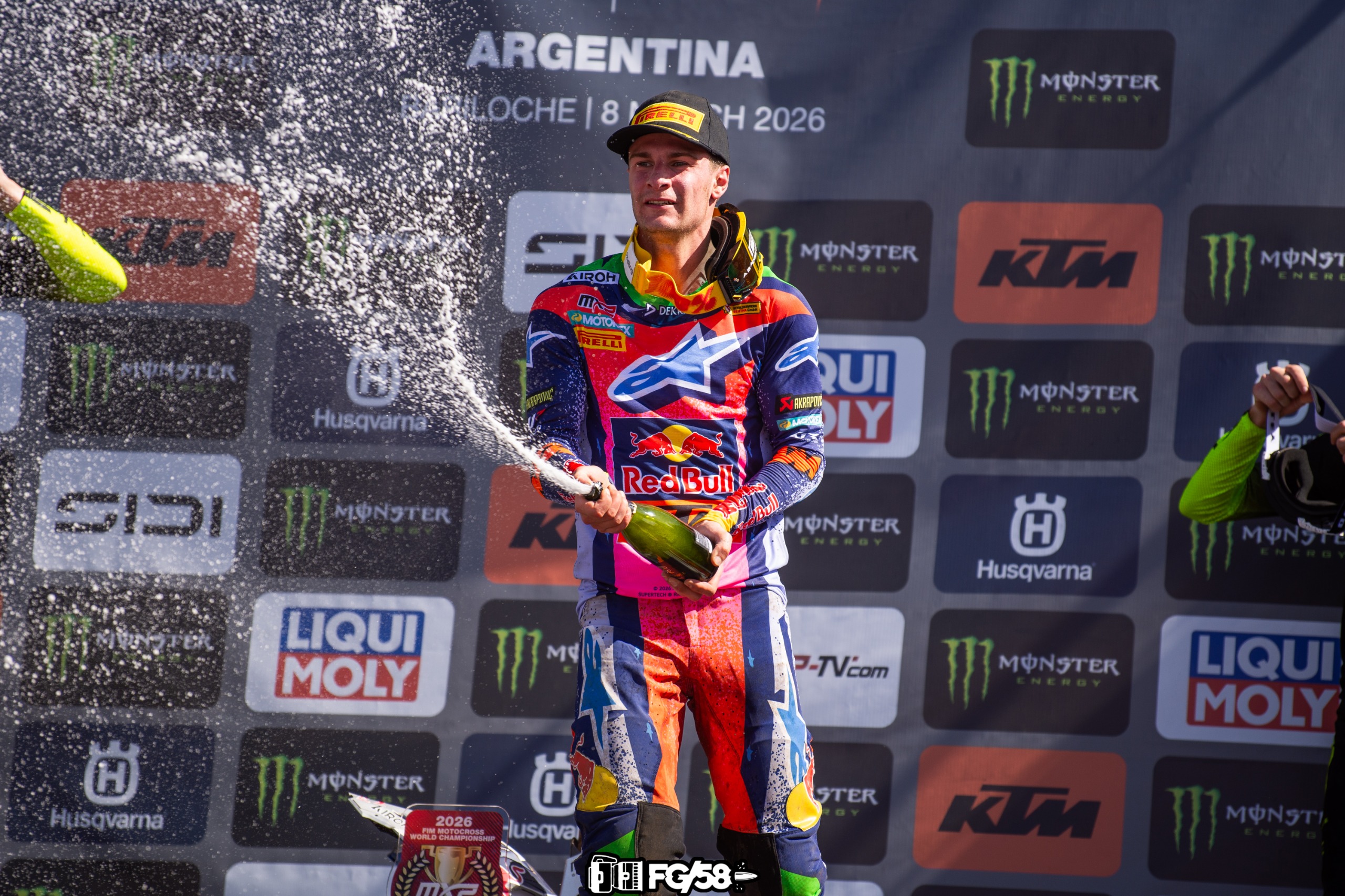 El Domingo, si bien la KX oficial de Febvré se mostró muy bien en las largadas, era aplastante el ritmo del holandés con la CRF #84, con la que logró una adaptación espectacular siendo siempre uno solo con la moto y jugando a batir a sus rivales hacia el final de las carreras siendo nuevamente el piloto que se pone en la gran vidriera del MX Mundial! No hubo forma de que pudiesen seguirlo y logró su segunda victoria en Argentina (la primera fue en 2018) y la nro. 113 en su historial. Febvré se quedó con el 2do. escalón del podio por tercer año consecutivo en Argentina, y Viallé debutó en el tercer lugar de la general!!!