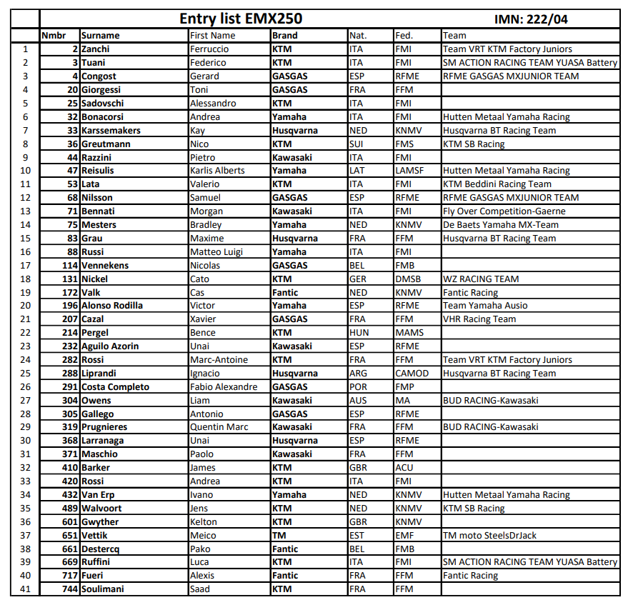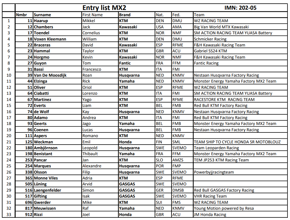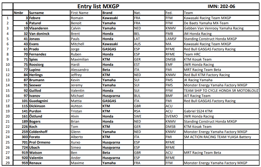 MXGP: LISTA DE INSCRIPTOS PARA ESPAÑA!