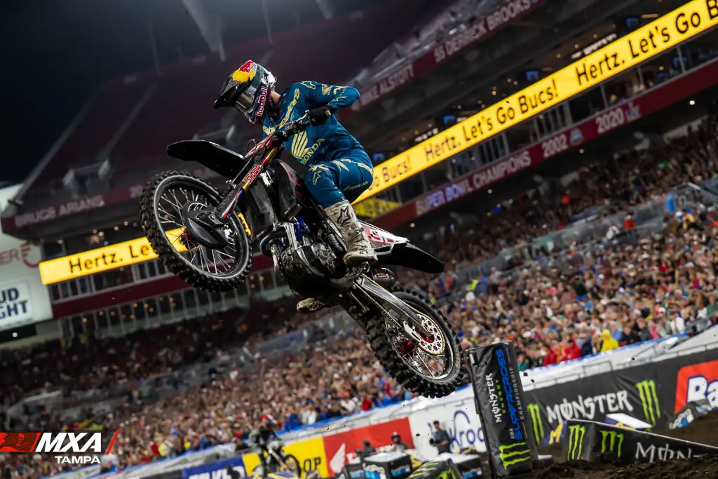 Reñidos, ajustados, peleados… así están los puntos en el campeonato del Ama Supercross donde en 250 del Este no sorprende ver a Hunter Lawrence dominando pero con Max Anstie que no se despega y la GRAN sorpresa (esperada) es Hayden Deegan en su año debut. En 450, Sexton quiere pero el campeón vigente Tomac, no lo deja… Excelente lo que logró hasta el momento Cooper Webb, y Anderson en “libertad condicional” pelea por el #1. Roczen, si bien no es sorpresa verlo adelante, si lo es con la moto que tiene y de la que nadie esperaba ese rendimiento. Paso la 5ta fecha del AMA SX en Tampa con la segunda fecha de la costa Este de 250cc, a continuación te dejamos los campeonatos completos de 450cc, 250cc Oeste y Este